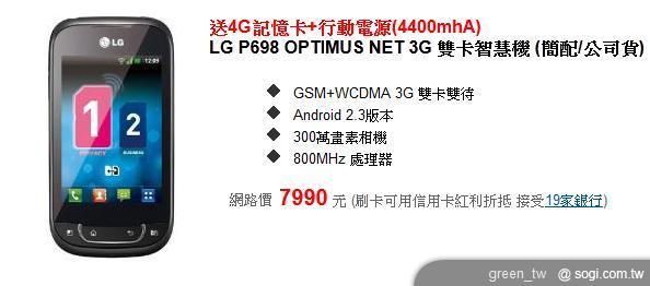 LG P698 OPTIMUS NET 3G 雙卡智慧機 (簡配/公司貨)