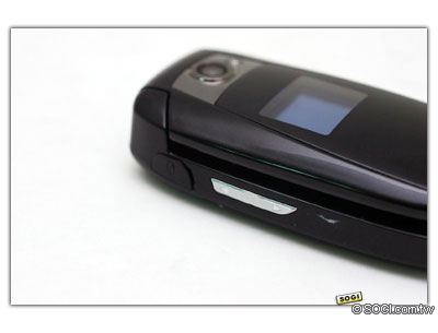 LG S5000 機身右邊的耳機插孔是一般 2.5mm 的手機音源孔,外面耳機蓋為黑色硬塑膠非軟橡膠,音量鍵可調整鈴聲大小及語音大小。