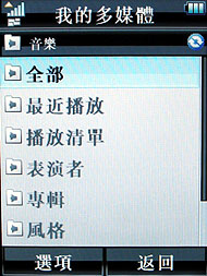 支援市面上所有最常見的音樂格式,如 MP3、AAC、WMA v10、WMA v9、AAC+ Enhanced、AAC+、WAV、Windows WMA plus Janus DRM 等,在電腦端編輯完成的 ID3 資訊,傳輸到手機當中即自動完成分類,根據演唱者、專輯和曲風進行排列。