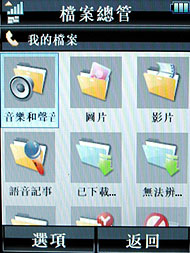 採用 Java+Linux 的新系列手機,其多媒體管理與以往截然不同,採用全新的管理介面,可將檔案設定為縮圖預覽,所有的資料夾、檔案因而一覽無遺,在管理上也更為直覺化。