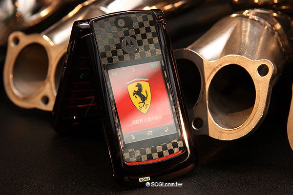MOTORAZR V9 法拉利限量版手機當中,內建 11 種法拉利專屬桌布、2 種專屬螢幕保護程式、關機與開機時搭配 Ferrari 極速音效、3 種不同來電鈴聲,提供給法拉利車迷難忘的使用經驗。