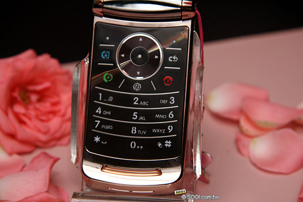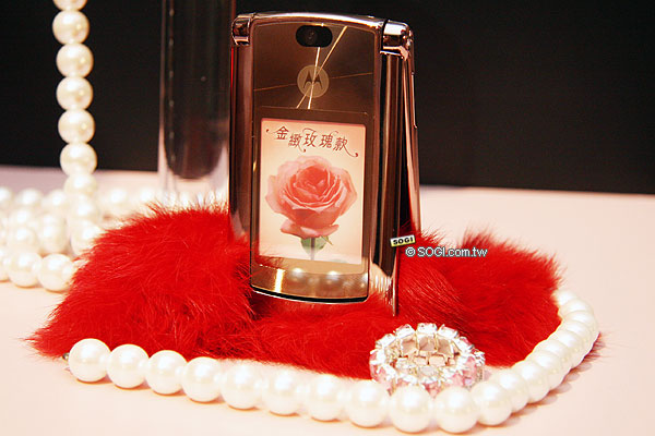 MOTO V9 金緻玫瑰色是為女性朋友打造的色系,金屬感的玫瑰色機身,及義式咖啡般的褐金色鍵盤,讓 MOTORAZR V9 金緻玫瑰款顯得高貴優雅。此款式上市初期一個月,搭配遠傳和全虹通路上市,在開放性價格上與原來版本的 V9 相同,不像法拉利版由於是特製且限量,因此較為昂貴。