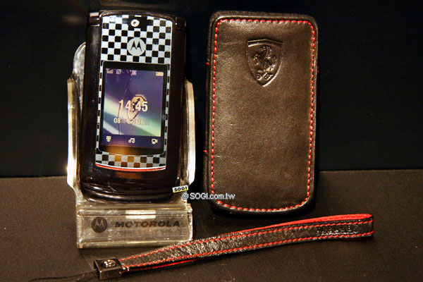 MOTORAZR V9 法拉利限量典藏版,有著鑄鋼金屬鏡面和一體成型流線外觀,搭配黑紅流光薄滑質感,同時融入賽車旗格菱紋圖樣。此外,MOTORAZR V9 法拉利限量典藏版,還搭載獨家法拉利螢幕保護程式、典藏紀念桌布及低鳴強撼引擎開關機鈴聲。購買 MOTORAZR V9 法拉利限量典藏版,再附贈法拉利授權專屬手機皮套、手機吊飾、車用充電器。