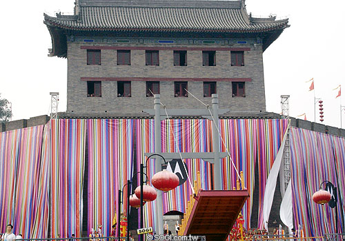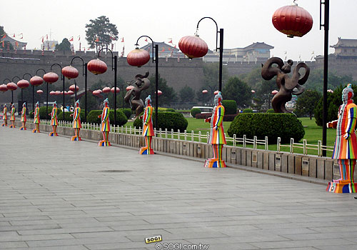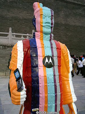 在城門前廣場大道上,排列了令人驚豔的彩繪兵馬俑士兵,全部由 Motorola 重新打造,以色彩的多變強調 2006 年的手機設計重點。目前這些色彩的應用,已經出現在 MOTO RAZR V3i、MOTO 明、MOTO PEBL 和 MOTO SLVR 等系列。