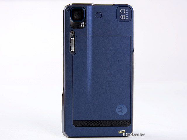 ▲MOTO MILESTONE XT720 背蓋採用人造皮革烤漆,可以杜絕指紋沾附,手感絕佳,是斑比最愛的設計!另外也將 MOTO MILESTONE XT701 的黑色烤漆改為深藍色色系,質感更為突出。