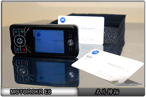 內建名片拍立存功能,可輕鬆輸入和分享電話簿資訊,與商務夥伴隨時保持最佳聯繫,輕鬆掌握人脈關係。MOTOROKR E6 更新增了 QR-code 二維條碼功能,讓消費者輕鬆透過 MOTOROKR E6 行動條碼讀取器,拍照辨識條碼內容資訊,可直接連結行動上網、撥電話、寫簡訊、編輯通訊錄。