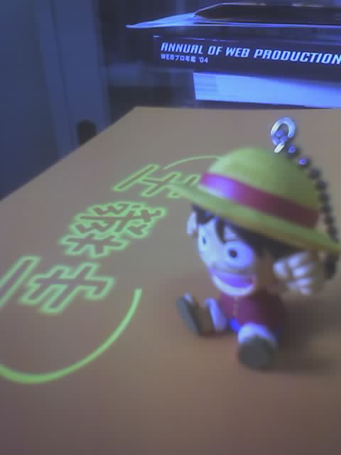 我們利用 MOTO V501 內建的藍芽,將照下來的圖片傳到電腦裡,就發現,成相品質沒有在手機螢幕裡看得好,色調偏暗,飽合度不佳。這點就有些遺憾,點下圖放大後,可以看到比較遠的原文書字看起來還滿清楚的,最接近鏡頭的魯夫則模糊許多,所以 MOTO V501 的相機表現只能說普普的。