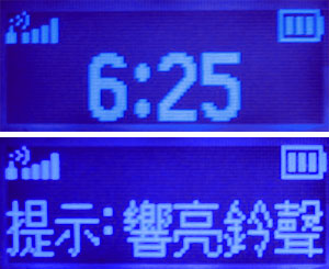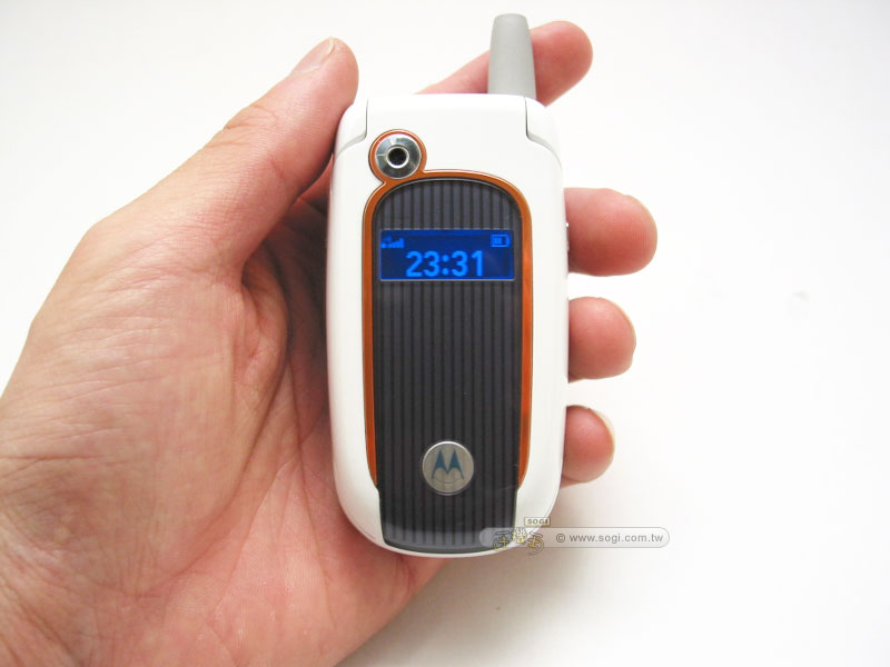 下圖為 MOTO V501 單色外螢幕的表現,可顯示時間、電量、訊號、待機模式、來電等等的訊息。