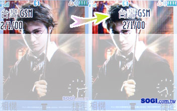 下圖右,是 MOTO V501 的來電大頭貼畫面,與 MOTO 之前上市的系列有著相同的大小,只是圖片設成來電大頭貼之後畫質就變差了。這也是記憶體太小的緣故吧!!
