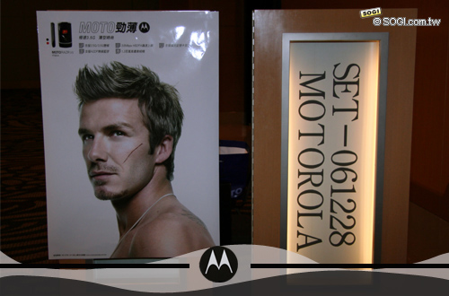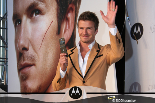 前足球金童貝克漢為了 MOTO 手機,首次抵達日本出席代言的活動,以配合 RAZR 系列正式在日本登場。MOTO 與 NTT DoCoMo 合作,率先推出 M702iS 與 M702iG 兩款 3G 手機。