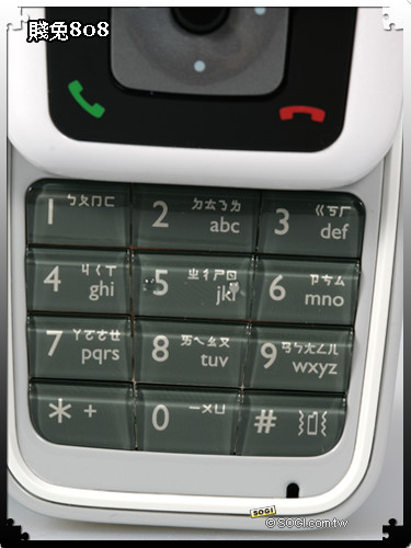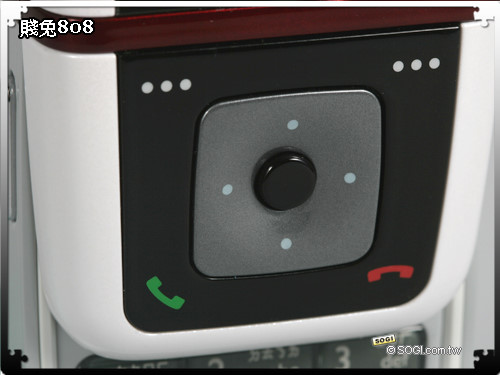 螢幕下方的選項鍵及五向功能鍵,則與數字按鍵採取不同的設計概念,除了五向的確認鍵是立體的造型以外,其餘皆以平面的光滑模式為主,替手機增添多樣化的操作風格。