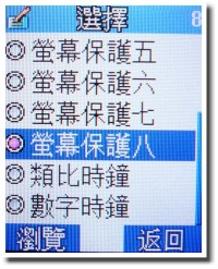 在桌布方面,M808 內建了數種款式,供使用者於日常生活中挑選、更換,還能夠選擇桌布時間的呈現狀態,包括有「類比時鐘」和「數字時鐘」等。而為了豐富手機螢幕的視覺效果,桌布還能夠定為「固定桌布」和「自動循環」兩種,其中,「自動循環」就是大家熟知的「螢幕保護程式」,讓圖片以動畫的方式呈現。