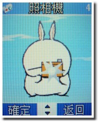 透過賤兔肖像打造的「照相機」選項,讓人有會心一笑的感覺!而進入「照相機」功能中後,備有「照相機」和「相簿」兩個項目。在拍照設定方面,則有「連拍」、「延遲拍攝」、「曝光補償」、「變焦調整」、「影像特效」、「照片大小」及「照片品質」等項目,供使用者自行更改。