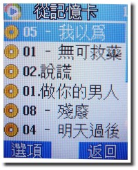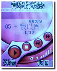 在音樂播放的部份,M808 賤兔機內建時下流行的 MP3 播放器,可透過按鍵來操作暫停、播放、前後首等,不過,介面中各代表符號是以橫向的方式排列,並沒有與五向功能鍵相互對應,操作稍嫌缺乏直覺性。此外,手機可支援外接記憶卡,能夠讀取卡片中的音樂,使用者可以隨心所欲的增加音樂檔案。