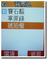 M808 賤兔機在背景的設定方面,共有三款背景色可選,分別是「寶石藍」、「草原綠」及「琥珀橙」,不過,M808 的背景更改僅具備色系的轉換效果,和一般時下的「主題」模式不一樣。
