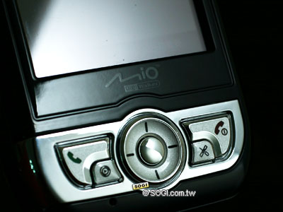 PDA PHONE 型式的操控鍵,就是一個結束鍵、通話鍵,五向按鍵,Mio A700 則再加上一個 Windows Media 鍵以及一再強調的重點功能:GPS 專屬按鍵,單手操作 Mio A700 是很容易的事。