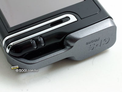 這是一款 PDA 手機,Mio A700 擁有大螢幕的特性,外型設計也擁有 Windows Mobile 5.0 強調的單手操作的優點,我們可以看到上圖,機頂上有個 GPS 字型的天線,就是它擁有衛星導航功能的證明,而機身的右側則有重置孔,以及記憶卡插槽,支援 SD / MMC 卡,也支援 SDIO 卡擴充,可以加裝 WIFI 卡來使用無線網路。