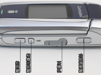 在第一頁就有介面,Mitsubishi M790i 的相機是隨著上蓋來轉動,開蓋時就是自拍的模式,而要拍攝其他景物就利用外螢幕來拍照,所以它需要較大的外螢幕囉!如下圖,使用者可以利用 M790i 的側邊相機功能鍵來操作所有的相機功能,如設定、模式轉換、變焦、亮量調整、相片尺寸……等。