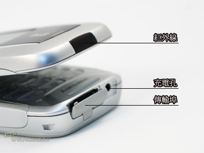 Mitsubishi M790i 的紅外線與其他手機不同的是,它將其設計在上蓋的前端,如下圖所示,不過這樣的設計有時與其他手機對傳資料時要有點技巧對得準。