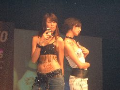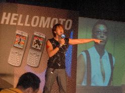 節目一開始主持人就像大家展現了E365的拍照功能,透過大螢幕,我們可以很清楚的看見這隻30萬相素的威力,果然是很不錯!接下來就是一連串的Show Girl表演活動啦!這隻以火為主題的E365,你會發現會場的工作人員都貼上了這個刺青貼紙喔!moto這次也做了一個造勢活動,就是凡是只要當場刺青刺上圖案後,這隻新手機馬上就送給你啦!厄,看到此處,小編很佩服有去刺青的人耶,我的話大概只敢貼刺青貼紙玩一玩吧!不過也不錯啦,如果同時想要刺青又想要手機的人,這可真是一個一舉兩得的辦法呢!