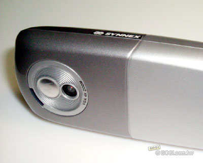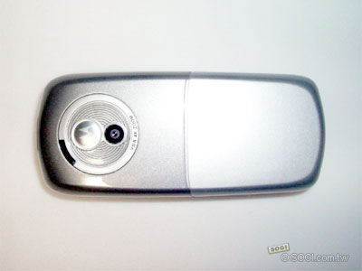 雖然Moto沒有特別強調,不過卻帶有最近各家廠商都頗為中意的「雙面設計」。和SE的K700i有異曲同工之妙,從背面看過去有點像是一台數位相機。鏡頭下方標示「VGA 4X ZOOM」即表示支援「30萬畫素以及4倍數位變焦」。