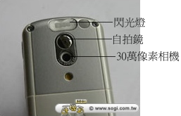 E398 的數位相機鏡頭位於機身背後,內建的 3 段式 4 倍變焦與閃光燈配備,也有自拍鏡的設計,滿足當下年輕人愛自拍的習性,E398 隨機附贈立體聲耳機 ,這裡較特別的是,E398 將耳機座設於機頂處,與一般大多數手機都將耳機座設在二側或底座不同,由於 E398 將二側做為喇叭設計使用,所以能利用的空間,大概也只有機身上方囉!