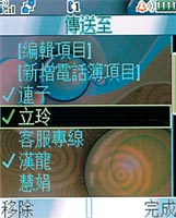 4按下右下角的「確認」後,就可以進入電話簿,選擇要傳送的對象,一次可傳送多位好友。
