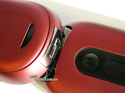機身上方的 USB 傳輸埠,可以用來存取手機內的個檔案,不過以其 5 MB 的大小似乎又不太夠,但藍芽功能應該是很實用的,內建 5MB 的容量應該還是可以讓你照個幾張 30 萬畫素 VGA 的圖片。