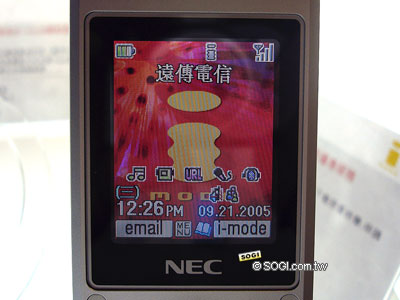 即將引進的NEC N512i,其實外型與水貨版的L1相差不大,不過在外螢幕及LOGO的中間,可以很清楚的看見N512i是一支i-mode手機,可使用i-mode所有的加值服務。