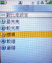 NEC N600i 在進行視訊通話的時候,按下主目錄選單可以設定相關的功能。對比度的設定方面,有最光亮 、較光亮 、標準 、較暗 、最暗等五種設定,可調整視訊通話螢幕的亮度。而且,也內建了晴天 、多雲 、自動 、室內等五種白平衡,在不同的環境之下進行視訊通話,確保有最良好的畫質。
