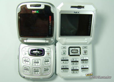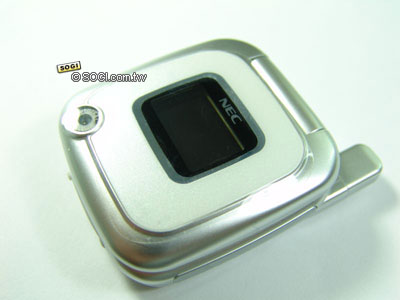 NEC- N9X造型小歸小,卻一樣有著不可輕忽的的內在,翻蓋一看TFT LCD螢幕材質,印在螢幕左方顯而易見,而且不會因為機子小就讓螢幕跟著縮水。NEC 的 反光 logo 與外殼相同印在上方。