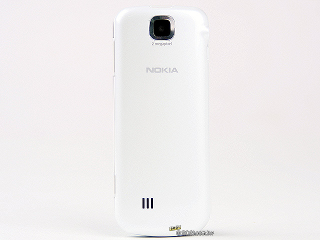 ▲NOKIA 3806 CDMA 機身背面,搭配一顆 200 萬畫素相機及喇叭孔。機背的塑料材質呈現亮面珍珠白效果,而且觸感滑順,同樣也有不沾指紋的效果。