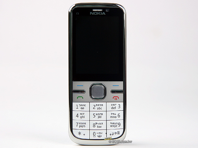 ▲NOKIA C5 搭載 2.2 吋、QVGA 螢幕及一組白色大面積按鍵,包裹上一圈拋光金屬外框,造型低調方正。
