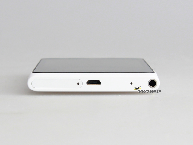 ▲NOKIA Lumia 900 機身頂部為 microSIM 卡槽,外露的 microUSB 連接埠、降噪麥克風與 3.5mm 耳機孔。