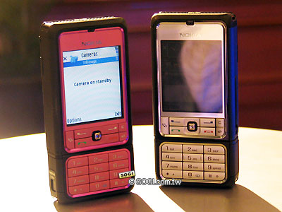 上圖是 Nokia 3250 二款彩殼顏色的合照圖,Nokia 3250 除了經典的銀黑色系之外,此次還特別發表一款「粉色系」彩殼之設計,由此可以知道,粉色系手機在繼銀黑主流時尚色系之後,將是另一股新興之潮流。