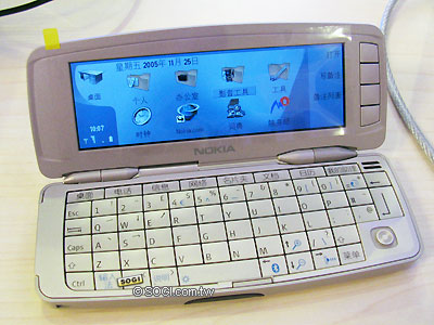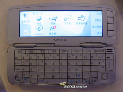 Nokia 9300 是久未露面的 9 開頭系列手機,Series 80 強調的是雙手操作的使用介面,可以很清楚的看到它配有QWERTY 的標準鍵盤,就是讓商務人士在輸入時可以更快速。