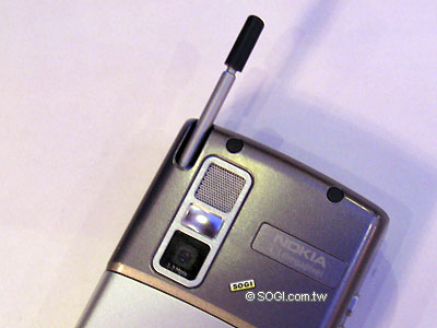 背面則是手寫筆插槽,以及很有設計感的鏡頭、自拍鏡以及揚聲器。6708 內建 130 萬畫素相機,比起 P30 好了許多,而背面的 LOGO 已經換成 Nokia 的商標。