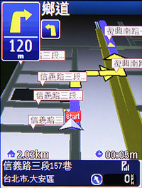 開啟 Nokia 6110 Navigator 的行動條碼應用程式與機身背面相機蓋之後,便可立即進入 QR-Code 掃描畫面,盡可能的將螢幕中的紅色框框對準欲掃描讀取的行動條碼,不到三秒鐘便可輕鬆掃到該行動條碼的資訊,不過在諾基亞所附贈的「Taipei Walker QR code 美食玩樂誌」中,玩家還可以讀取到各種不同店家的地標,甚至是直接進行導航。