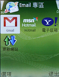 除了瀏覽網站之外,收發電子郵件與 msn 連線也是行動上網者最常使用的功能。諾基亞 N 系列網路加強版手機亦針對此兩項功能整合進去,在 E-mail 專區資料夾內,諾基亞整合了網友最常使用的幾個 E-mail 信箱,可直接連結至該信箱的登入頁面,進行收發電子郵件的工作。另外,針對 msn 即時通訊部分,使用者亦可直接開啟 msn 登入介面,無須再進行 msn 應用程式的安裝。