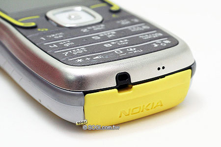 Nokia 5500 Sport 外型設計有如一雙動感的跑鞋,不鏽鋼外殼設計搭配塑膠材質設計,可真正做到「三防」,從上圖中,Nokia 5500 Sport 在機身的主要插孔介面上特別追加了一層塑膠材質保護,使用者再帶著手機運動時,也可以徹底的達到放心的心理效果。