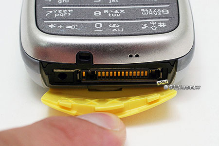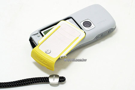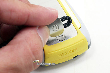 不僅插孔介面保護完善,Nokia 5500 Sport 在電池蓋的保護程度上也是不惶多讓。如上圖,使用者必須透過隨機附贈的專屬開蓋工具,才能順利的完成更換電池或 SIM 卡的工作,而為了讓消費者在使用上更加便利,諾基亞此次特地將開蓋工具設計成手機吊飾。