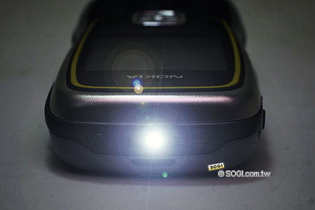 雖然 Nokia 5500 Sport 在相機上並未支援閃光 / 補光燈的輔助拍攝功能,不過 Nokia 5500 Sport 在機身頂端還是具備一個超強亮度之照明燈,在山區運動,夜晚來臨時,Nokia 5500 Sport 可充當一個稱職之臨時手電筒。