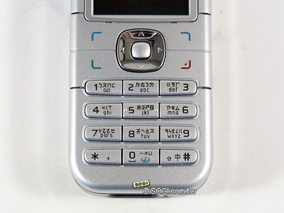如上圖,Nokia 6030 的按鍵設計很符合諾基亞基本款手機的按鍵設計,尤其是它的大按鍵設計,非常好按,彈性也蠻佳的,此外,Nokia 6030 還具備了四向操作鍵與中間的 OK 鍵,在四向操作鍵的周圍用彩色圖騰顯示的那四塊分別也是操作按鍵,換句話說,Nokia 6030 在按鍵設計上還算健全。