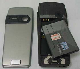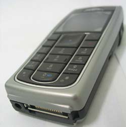 仔細一看,Nokia 6230 只有介面操作鍵和螢幕整體為深黑色,背殼則是亮灰色,從側面看就可以一目瞭然,在背面外加橫向深黑的設計版, Nokia 果然在小細節也很注重。