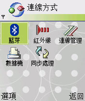 Nokia 6260 的擴充不只是軟體囉,硬體也可以支援記憶卡的擴充功能,並使用各種傳輸介面來擴充軟體、同步資料以及分享。如下圖,Nokia 6260 支援藍芽傳輸,不論是手機對傳或是傳到印表機,或是與藍芽耳機連線,都一應俱全,功能很齊,不怕用不到!!