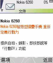 除了影音功能外,Nokia 6260 內建有掌上圖書的工具,讓你也可以在行動中來看看小說或是文件,增加自己的內涵,夠厲害吧!!當然上網功能也是瀏覽模式中的主角,只要按下數字鍵的「0」鍵,就可以直達網際網路。