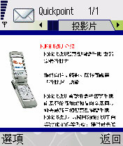 Nokia 6260 閱讀 Word 時,裡面的圖片將無法顯示,筆者試過之後的心得。而 PowerPoint 的圖片則可以正常顯示,並可以使用全螢幕來觀看 PPT 文件,也可以調整大小至最適瀏覽的大小。如下圖: