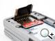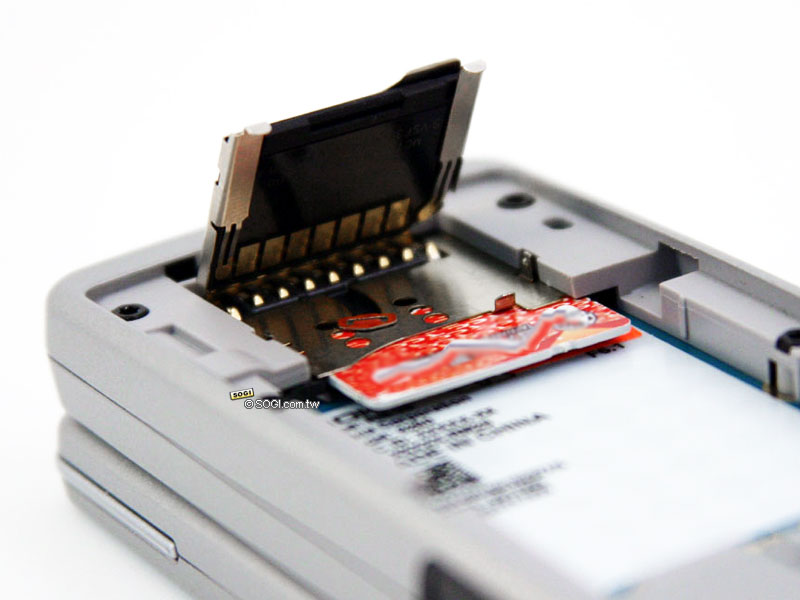而 Nokia 6260 支援 RS-MMC 記憶卡,並可以取下背蓋直接更換記憶卡,也就是熱插拔的功能,不用關機即可立刻更換!!而 SIM 卡則是與記憶卡在同一處。