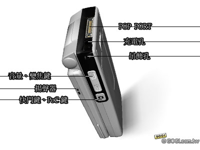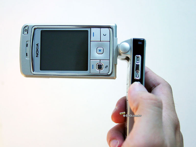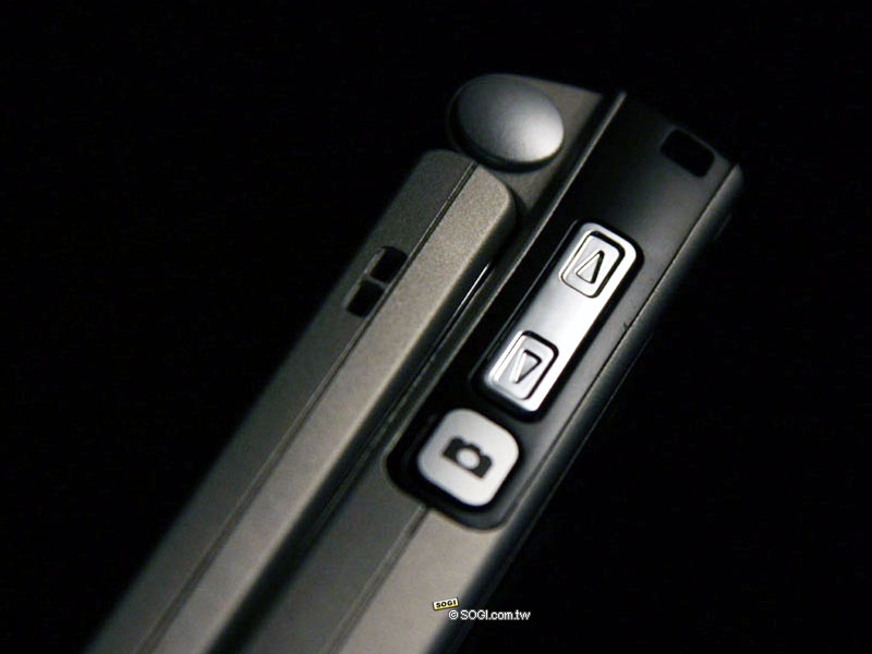 現在手機的週邊設計,都越來越符合使用者的需求,也盡量做到快速鍵的充份應用,Nokia 6260 也有許多的功能鍵!!如上所示,音量同時是照相、錄影時的變焦鍵;相機快門鍵也與 PoC 鍵相同,這時有人就會問了:那要啟動相機也是按這顆鍵,要怎麼同時即按即說呢? Nokia 6260 啟動相機不是使用側邊的按鍵,而是轉動螢幕來啟動,因為它的相機是在旁邊,所以用 90° 的角度是最好的取景角度!!