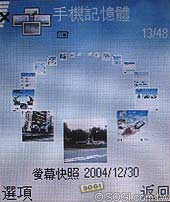 除了強大豐富的拍攝功能之外,Nokia 6630 還內建了詳細的影像檔案管理工具,尤其是其內建的輪盤式影像瀏覽更是一絕,消費者只要按選項>影像顯示,即可用全螢幕橫向瀏覽單張相片。